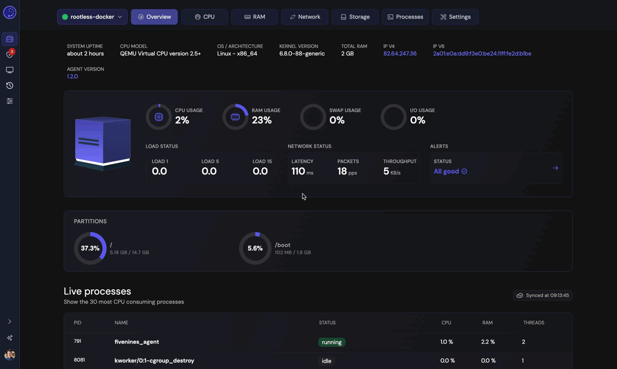 By default, the FiveNines agent expects Docker to be running as root. If you are using Rootless Docker, the agent cannot see your containers because they run inside a private user namespace that is invisible to the rest of the system.
